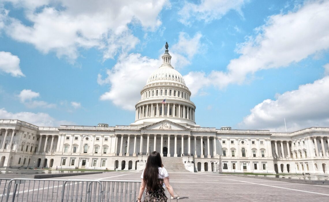 Những ngày chuẩn bị đi, nghe tin vệ binh quốc gia điều động đến Washington, rồi người dân ra đường phản đối chính sách, mình cứ tưởng ra khu trung tâm phải đông lắm cơ. Thực tế là mình quay sang hỏi Winnie, Washington bình thường chỉ có từng ngày người thôi ấy hả? Mình cứ tưởng mình sẽ nhìn thấy hàng dài khách du lịch như ở Big Ben. Chúng mình đứng ở cửa thư viện quốc hội ăn trước rồi đi ra khu nhà Quốc hội, toà tháp màu trắng mà ai đến Washington cũng chụp. Toà nhà Quốc hội Mỹ (Capital Hall) là nơi làm việc chính thức của Quốc hội Hoa Kỳ, gồm Hạ viện và Thượng viện, từ năm 1800. Đây cũng là nơi Tổng thống tuyên thệ nhậm chức và trình bày Thông điệp Liên bang (State of the Union) hàng năm. Tòa nhà tọa lạc trên đồi Capitol, là điểm khởi đầu của lưới hệ thống đường phố Washington và nằm ở cuối phía Đông của National Mall, phía Tây nhìn ra Washington Monument và Lincoln Memorial.